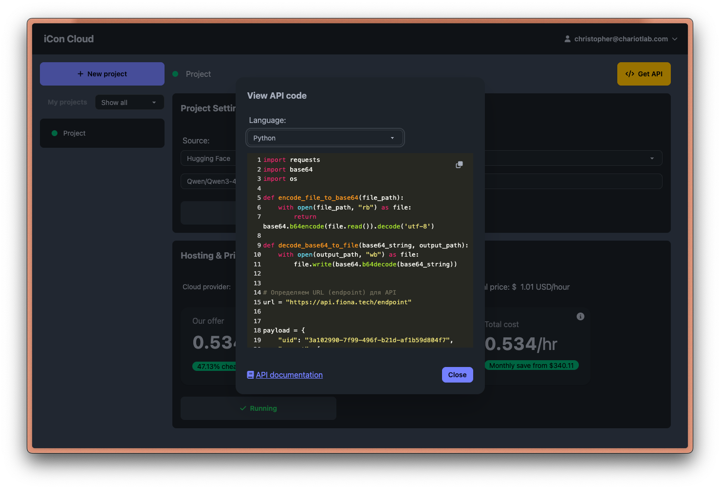 - We use our iCon Cloud tool to load an open-source LLM (Qwen3-4B-Instruct-2507) into our proprietary Container-Specific Programming Language (CSPL) Interpreter.