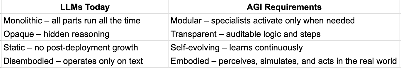 AGI is not scaled-up text prediction. And it’s not a clone of the human brain.